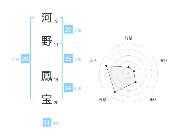 河野 鳳宝さんの総格は54画の1点!