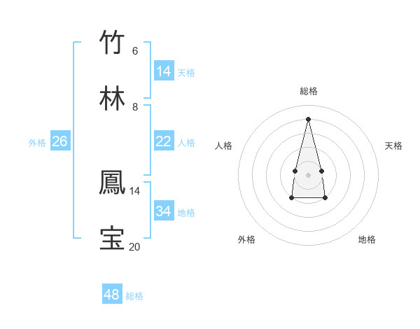竹林 鳳宝さんの総格は48画の4点!