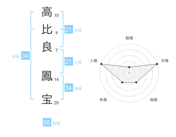 高比良 鳳宝さんを姓名の画数から五運を鑑定
