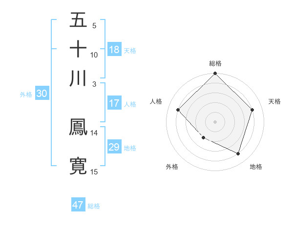 五十川 鳳寛さんを姓名の画数から五運を鑑定