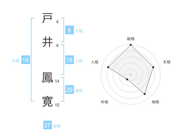 戸井 鳳寛さんを姓名の画数から五運を鑑定