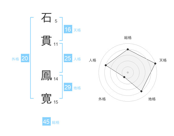 石貫 鳳寛さんの総格は45画の4点!