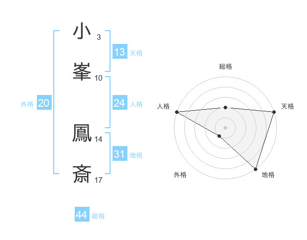 小峯 鳳斎さんの総格は44画の2点!