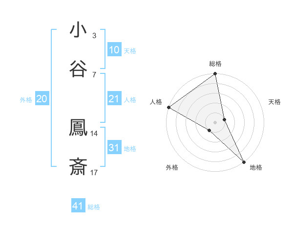 小谷 鳳斎さんの総格は41画の5点!