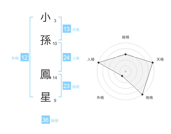 小孫 鳳星さんを姓名の画数から五運を鑑定