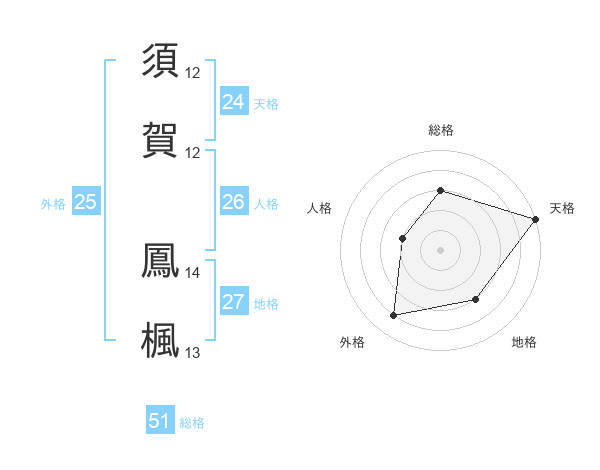 須賀 鳳楓さんを姓名の画数から五運を鑑定