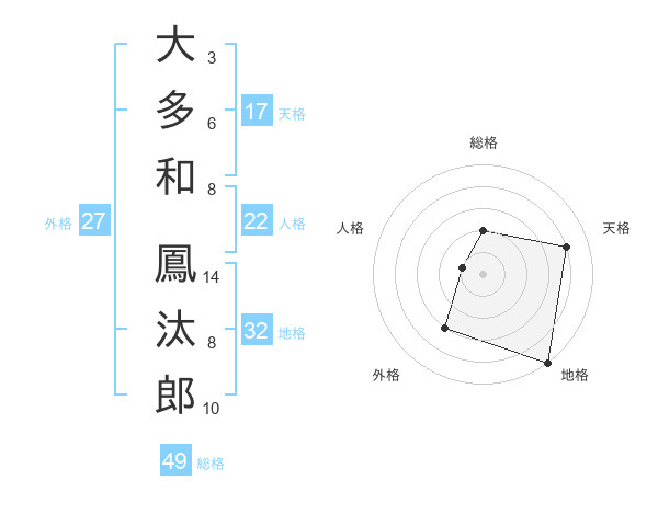 大多和 鳳汰郎さんを姓名の画数から五運を鑑定