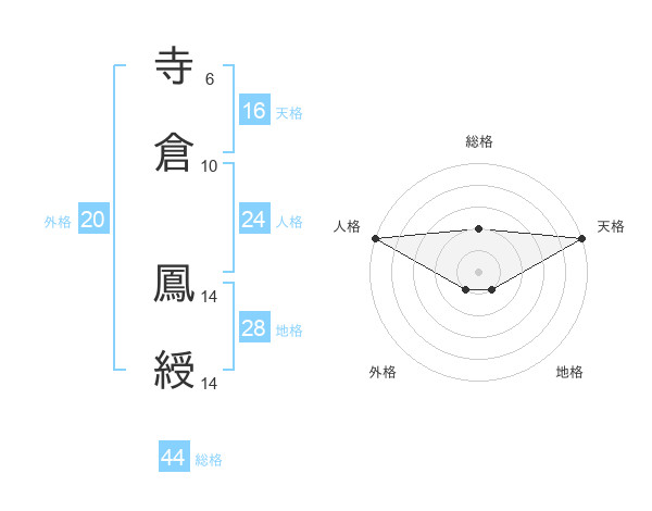寺倉 鳳綬さんの総格は44画の2点!