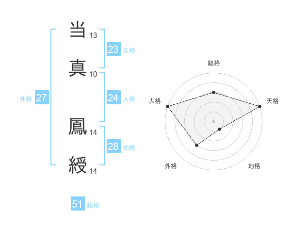 当真 鳳綬さんの総格は51画の3点!
