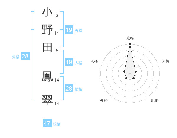 小野田 鳳翠さんの総格は47画の5点!
