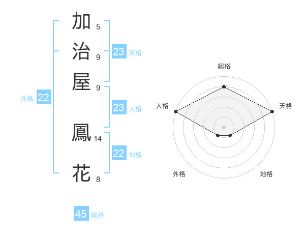 加治屋 鳳花さんの天格は23画の5点!