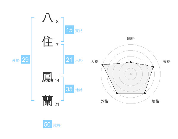 八住 鳳蘭さんの総格は50画の2点!