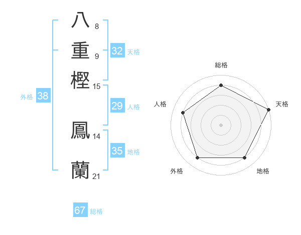 八重樫 鳳蘭さんの総格は67画の4点!