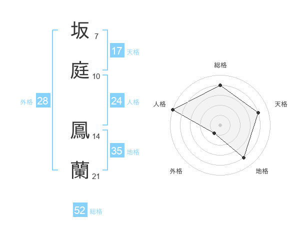 坂庭 鳳蘭さんの総格は52画の4点!