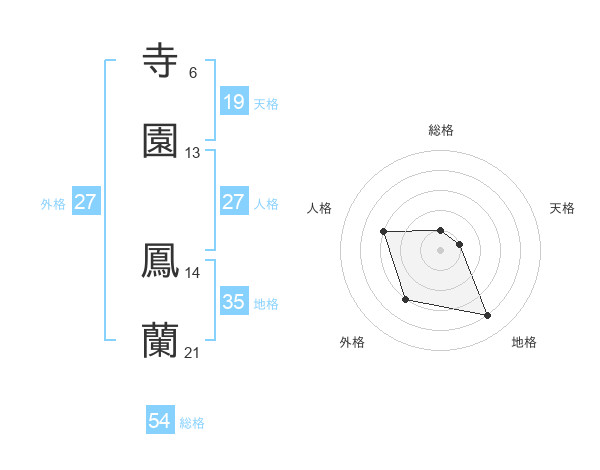 寺園 鳳蘭さんの外格は27画の3点!
