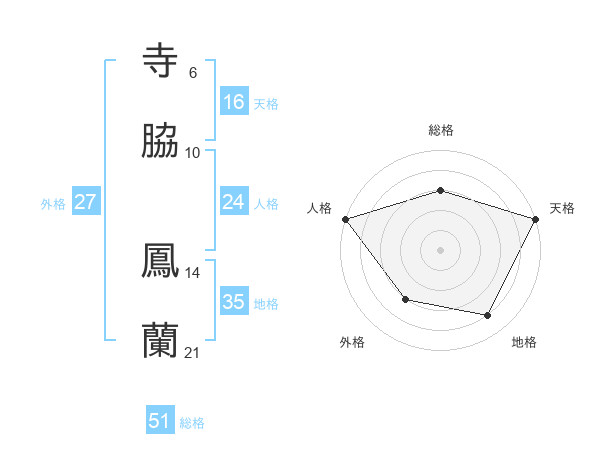 寺脇 鳳蘭さんの総格は51画の3点!