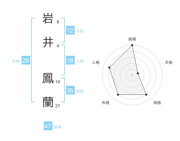 岩井 鳳蘭さんの総格は47画の5点!