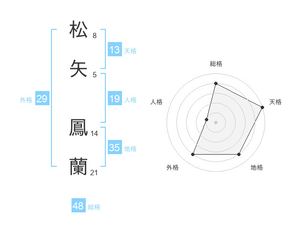 松矢 鳳蘭さんの総格は48画の4点!