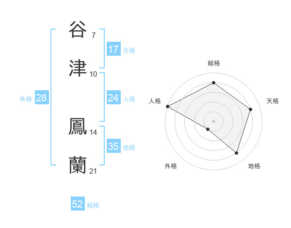 谷津 鳳蘭さんを姓名の画数から五運を鑑定