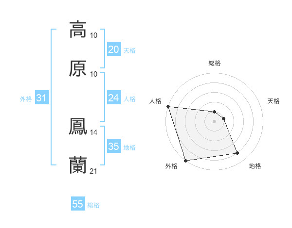 高原 鳳蘭さんを姓名の画数から五運を鑑定