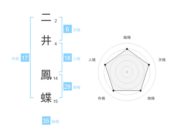 二井 鳳蝶さんを姓名の画数から五運を鑑定
