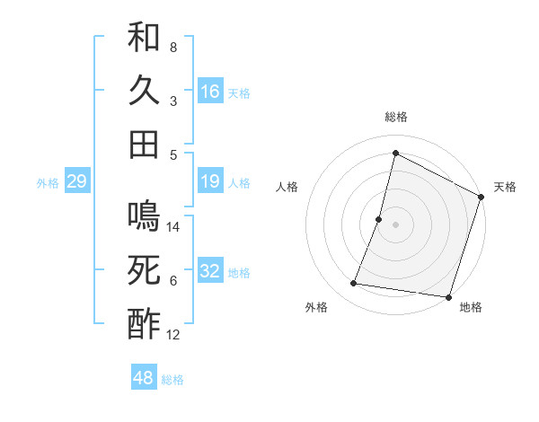 和久田 鳴死酢さんを姓名の画数から五運を鑑定