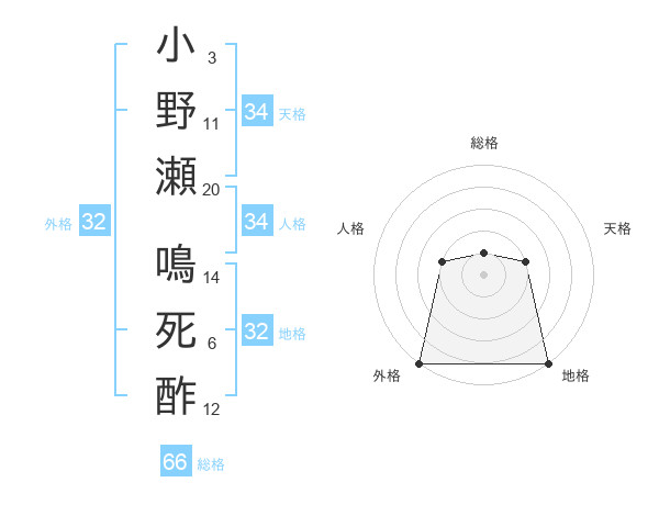 小野瀬 鳴死酢さんの外格は32画の5点!