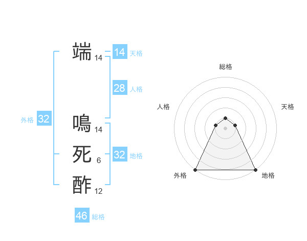 端 鳴死酢さんの総格は46画の1点!