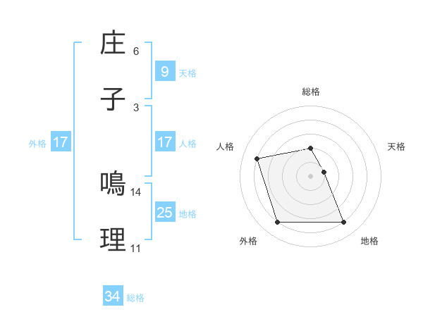 庄子 鳴理さんの人格は17画の4点!