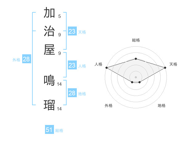 加治屋 鳴瑠さんを姓名の画数から五運を鑑定
