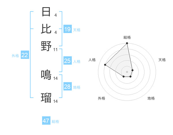 日比野 鳴瑠さんを姓名の画数から五運を鑑定