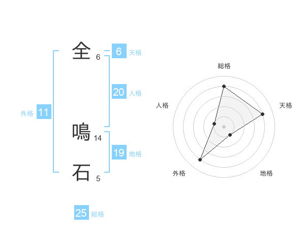 全 鳴石さんの総格は25画の4点!