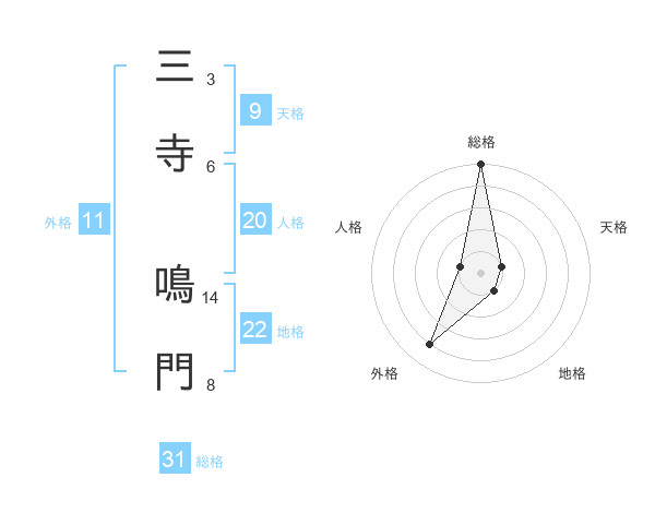 三寺 鳴門さんの総格は31画の5点!