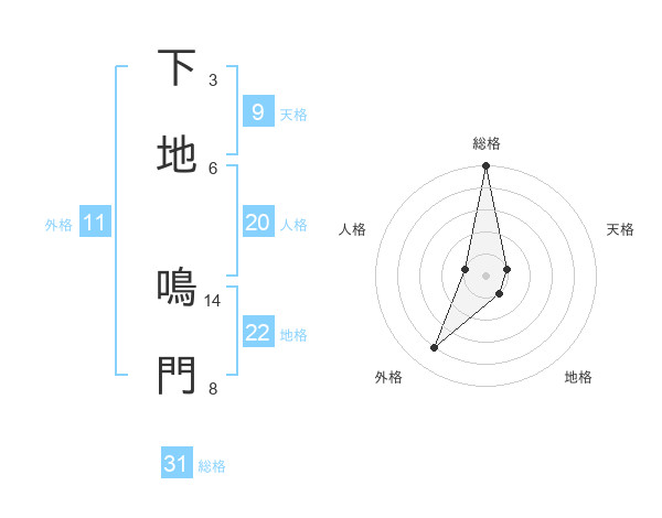 下地 鳴門さんを姓名の画数から五運を鑑定
