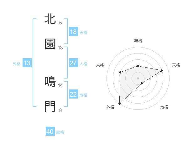北園 鳴門さんの外格は13画の5点!