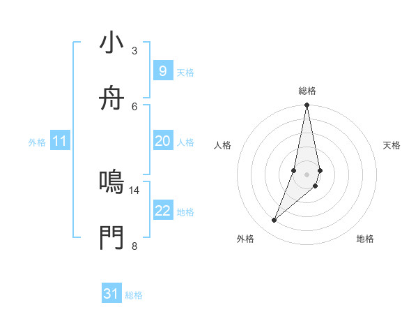 小舟 鳴門さんを姓名の画数から五運を鑑定