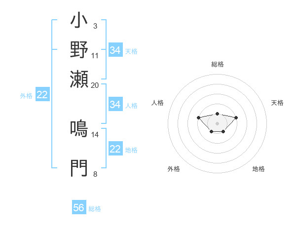 小野瀬 鳴門さんを姓名の画数から五運を鑑定
