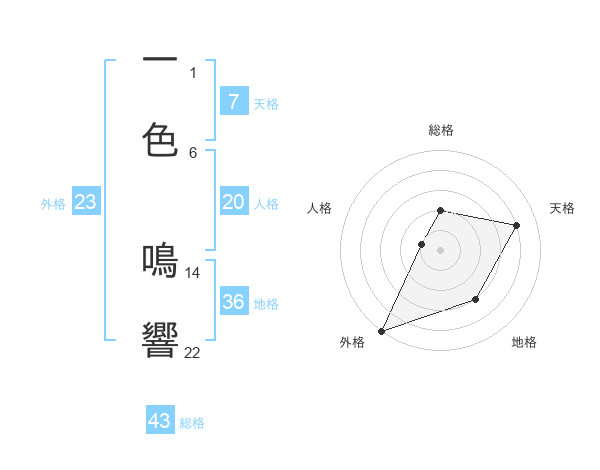 一色 鳴響さんを姓名の画数から五運を鑑定