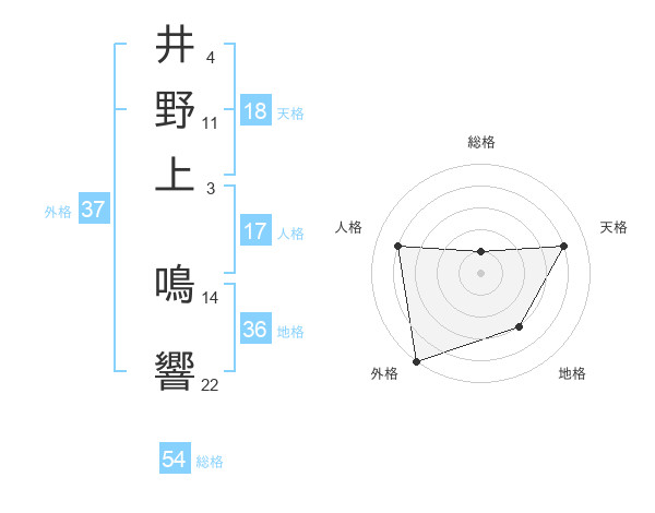 井野上 鳴響さんの総格は54画の1点