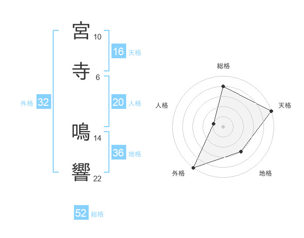 宮寺 鳴響さんを姓名の画数から五運を鑑定