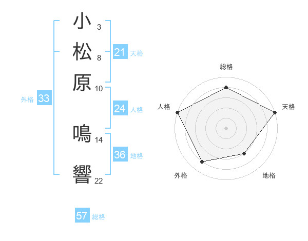 小松原 鳴響さんの総格は57画の4点!
