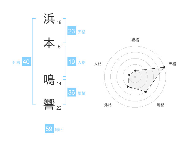 浜本 鳴響さんを姓名の画数から五運を鑑定