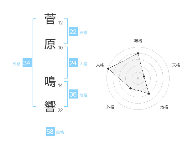 菅原 鳴響さんを姓名の画数から五運を鑑定