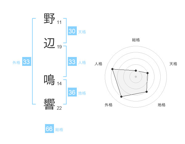野辺 鳴響さんの総格は66画の1点!