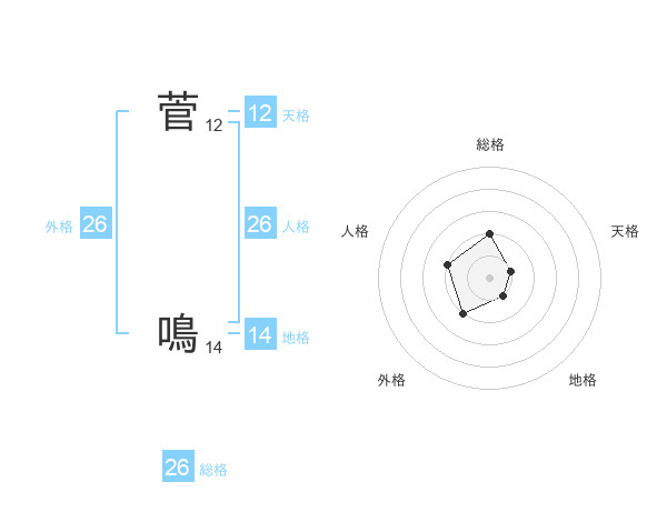 菅 鳴さんの総格は26画の2点