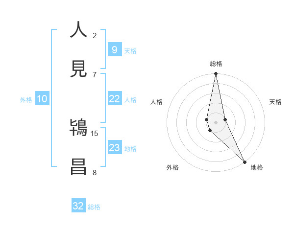 人見 鴇昌さんの総格は32画の5点!