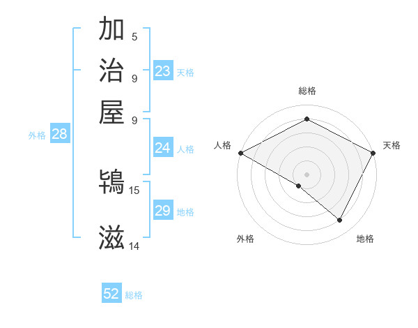 加治屋 鴇滋さんを姓名の画数から五運を鑑定