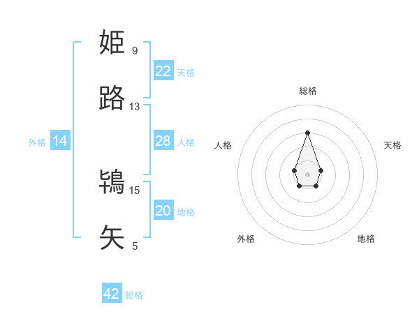 姫路 鴇矢さんの地格は20画の1点!