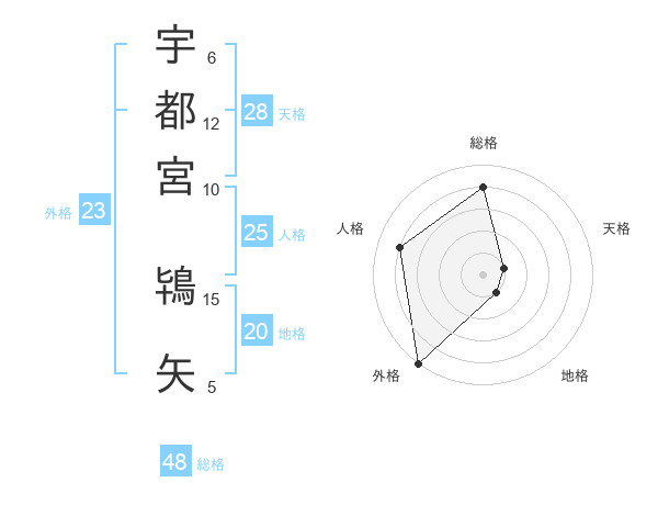 宇都宮 鴇矢さんを姓名の画数から五運を鑑定