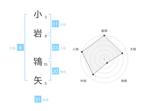 小岩 鴇矢さんの総格は31画の5点!